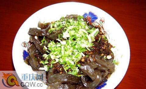 嘟卷子是彭水最為特殊的小吃之一,以前采用特殊的一種蕨類植物為原料,(現今改為紅薯)磨成細面,加水成糊狀,再放進熱鍋里烙成塊,然后卷成圓條,切成一卷一卷的,蒸熟,拌上調料于是就成為晶瑩剔透,軟糯滋潤,別具苗家風味的彭水名特小吃---嘟卷子!