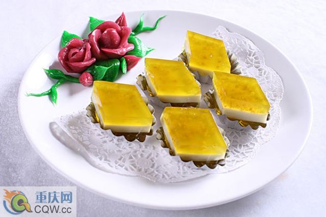 桂花糕:永川傳統(tǒng)美食,迄今已有百余年歷史。本品質(zhì)味香甜細(xì)嫩,別具桂花色味,謂之萬(wàn)白叢中一點(diǎn)黃。1984年評(píng)為重慶市名特小吃。