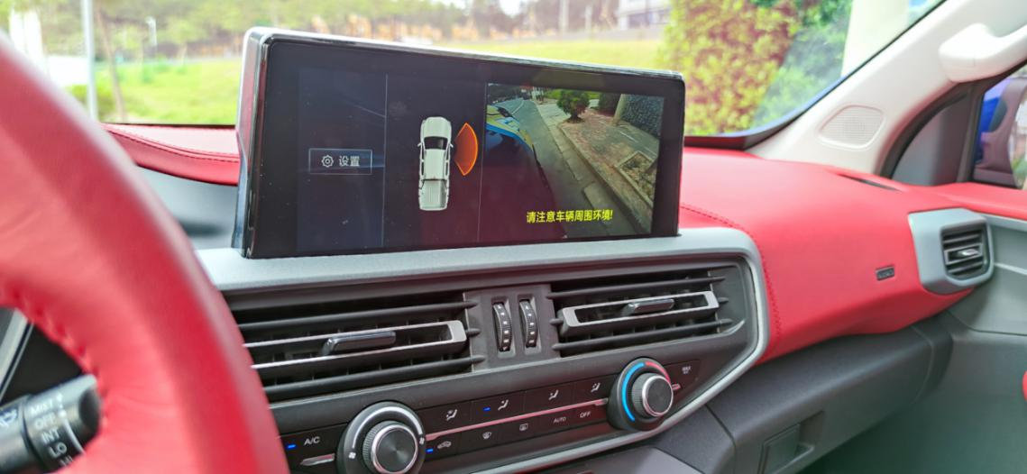 10英寸大尺寸的中控液晶屏幕,搭載長安最新的智能車載互聯系統,擁有車輛安全出行等多項功能。試駕車型帶有右邊盲區影像,在更高配的車型上還有360度全車影像,讓這款車長5.3米的皮卡駕駛起來更方便也更安全。