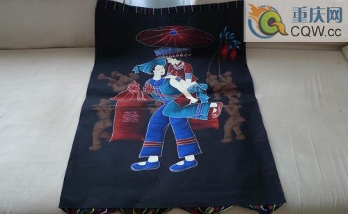 土家刺繡在配色上有其獨特之處,一般喜歡選用青、蘭、大紅等深色布做底布,圖案紋樣的繡線則多選用淺色,或者相反,底布花同淺色,而繡線用比較強烈的深色,兩種用法的效果可以使繡制作品顯得質樸逼真,色澤鮮艷生動,對比強烈,給人以喜悅吉慶的美感。