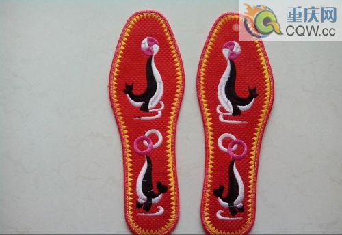 土家族姑娘繡花的方法,一般先資將要繡的花用紙剪成花樣,貼在繡花底布上,然后照著紙樣用絲線繡制。繡成之后,絲線便把底樣蒙蓋在里面了,圖案略顯突出,有立體感。精巧別致的繡花,大多表現在姑娘們的繡花鞋上,也有用來做服裝花邊或角花、胸花、枕頭蓋、童帽和繡花荷包等等。