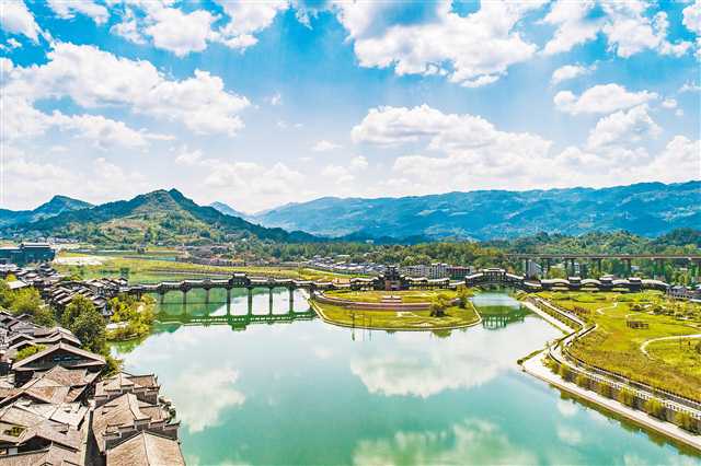 “這里不僅有江南水鄉的美,還融合了巴文化、土家文化等多種文化,確實值得一游。”徐先生身后,滄浪橋靜靜地橫臥在阿蓬江上,重檐歇頂,形如波浪起伏;橋下,阿蓬江靜水深流,一艘白色游艇正飛駛而過,在蒼青色的水面劃出潔白如銀的光練,水波蕩漾,倒影輕輕飄搖……