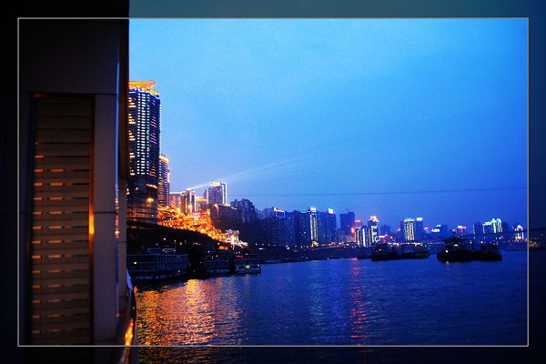 回賓館取回行李,稍息片刻直奔朝天門碼頭,可惜當時總擔心訂的船票出問題,沒太注意兩江分界便提早上了游輪。原打算再上岸吃最后一頓,想想又要換上岸牌,又要等上下纜車,就想在游輪上解決晚餐。雖然想到豪華有豪華的價,但看到魚香肉絲套餐98元一套,還是恨恨地離開。幸好還買了一些麻花等小吃,不然五星游輪的第一晚就要餓肚子了,真是對瓷器口吃不動地報應啊。在夜色里五星游輪小巧精致的露臺上,看到了朝天門的激光表演,在些許的搖晃中,晚上十點半,五星三峽之旅徐徐啟程,回北京再好好讀讀《失蹤的上清寺》吧……