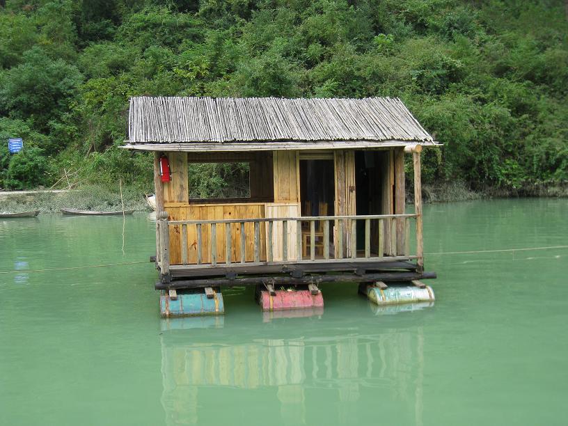 晚上住阿蓬江上的小竹屋。景區只有兩家農家樂,接待能力有限,只能住下20多人,我們到得較晚,只有住在水上了。