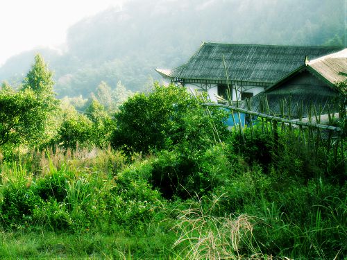 進了大門一直往前開,彎彎曲曲彎彎曲曲地到了十面埋伏的拍攝基地,其實整片山都是竹林,很漂亮~~