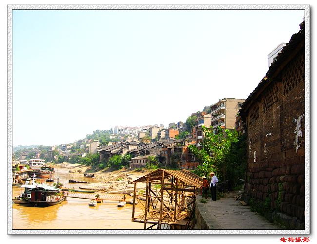 車過江津區白沙古鎮的時候,大家的精神頭兒全上來了,直嚷嚷要在白沙古鎮停留,逛逛古鎮。其實,在重慶古鎮的排行榜上,白沙古鎮是比較靠后一點點的,主要原因是古鎮在發展中已經改造了很多,古鎮的本色已經被時光淹沒了許多,而且這個鎮很大,大概是江津區的第二大鎮吧。不過,白沙古鎮位于長江上游,距江津區有四十多公里。據說有一千七百多年歷史。早在東漢末年,就有人口聚居,形成了村落,元代設建制鎮。白沙古鎮自古以來就是交通要阜,繁華一時。遠了不說,就是現在,白沙古鎮既是一個人口眾多的非常大的城鎮,又是一個水上運輸依然繁華的水碼頭,曾記得在七、八十年代,白沙古鎮還有小香港之稱。于是,午飯后,我們就開始了白沙古鎮游。鎮上的確有一些老房子和木板房,也有點像古鎮的樣兒,然而,木板老房已經不多了,只有一條老街,因而,我也順勢算進了《重慶古鎮》篇。