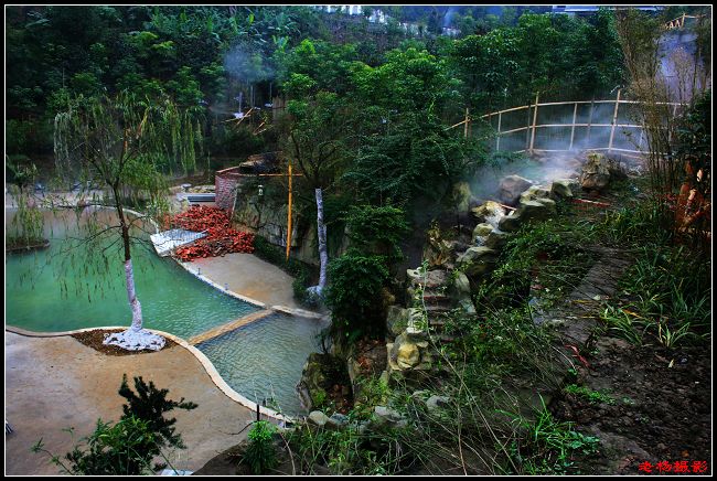 一位朋友相邀,我們一群朋友開車去了東泉。多年來,東泉在我的印象中是一個裸浴習俗十分古樸的地方。東溫泉風景區地處重慶市巴南區東泉鎮境內,與西南北泉相呼應,列重慶四泉之首,尤以豐富的地熱資源獨領風騷。景區內有大小泉眼48處,主泉日流量1229多噸。熱洞尤為奇特,洞中水常年保持40℃以上的水溫,富含氡、氟、鍶、鋅、鋰等 40 多種礦物質,屬硫酸鈣鎂型綜合醫療溫泉水,對人體具有顯著的養生、醫療、美容、保健等功效,被贊為亞洲奇觀——天然桑拿浴。關津峽口下游處的一處溫泉,被當地人奉為“神水”。不論春夏秋冬、白晝黑夜,男女皆在此入浴,毫無拘泥羞澀之態,可稱民俗一絕。村民稱,上世紀八九十年代,泡一段時間溫泉后,人倍感輕松,消乏解困,對疥瘡等多種皮膚病和關節炎、肩周炎、腰肌勞損、感冒、風濕等均有顯著療效。因而,前去裸浴的人最多,每逢趕集或送公糧,很多外地人都在此裸浴后才回家。特別是在清明節前,遠在南川、涪陵一帶的人都紛紛前來裸浴。當地裸浴是世代相傳下來的民間傳統習俗,不知源于何朝何代。裸浴有不成文規定,那就是“男左女右”、“看得摸不得”。因此,我們一到鎮上,朋友就告誡,最好是只看,不要拍照,以免招來麻煩,這個涉及人家的私秘。于是,我們只好照了一些水凼凼,沒有敢照裸浴的人。其實,從上世紀九十年代開始,很多單位陸續進駐當地,開發溫泉資源。特別是最近幾年來,溫泉城、賓館、農家樂、酒店等如雨后春筍冒出,隨之吸引來大量游客,同時很多泉眼被圈占,當地原滋原味的習俗被改變。鎮政府投資修建浴場,專供當地村民免費沐浴,旨在恢復當地傳統的淳樸民間習俗。但是,當地村民雖有人前去裸浴,但基本上以老人和小孩為主,年輕男女少之又少。姑娘小伙都說,“誰愿意脫得個光希希的,讓人看喲!”