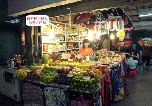唯美中不足就是..我們?nèi)擞?FONT face="Times New Roman">09/21到菜園壩火車站附近的批發(fā)市場買好東西要回兩路口..路經(jīng)扶梯口右側(cè)水果攤及左側(cè)水果攤時順便買了些石榴及梨子…想不到我們在攤位上所挑選最漂亮的水果..在回到旅館打開要吃時發(fā)現(xiàn)..每一顆外皮竟然都又丑又黑又小…梨子并且軟軟的有酒味根本不能吃….這哪是我們挑的東西啊…