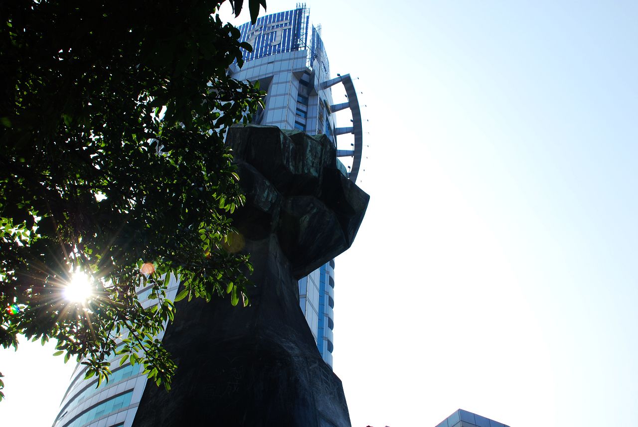 在街上漫無目的的尋找是我旅游的一貫方式,直到被一個碩大的雕塑擋住了去路,那是一只緊握的拳頭,在夕陽柔和的線條照映下顯得異常的剛毅。它背后的故事很少有人知道,甚至我都叫不出他紀念的主人公,唯一了解的是當年軍閥割據即將結束時,美英炮轟慶祝的百姓,楊先生出面組織抗議,卻被四川省長劉湘派人追殺,最后挖舌剜目砍手直至殺害。