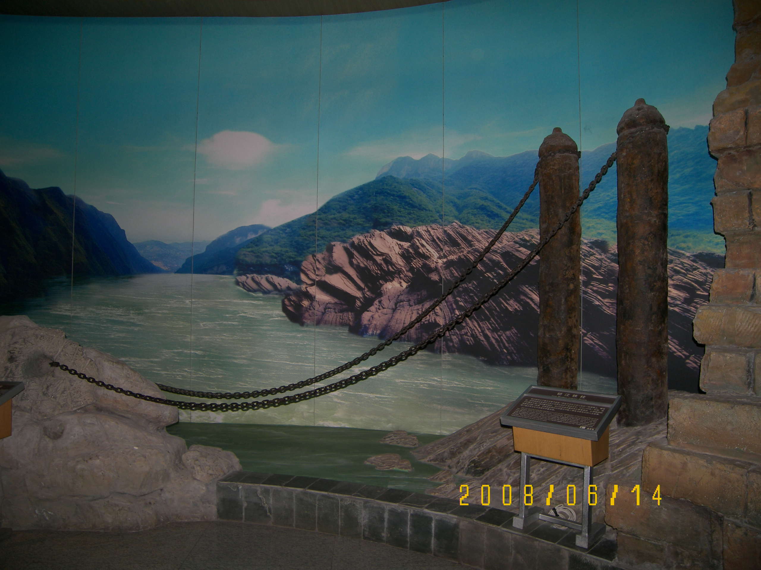 看完周公館還是回到輕軌站地道走去三峽博物館,居然憑身份證領(lǐng)票,奇怪啊!這里號稱是全國最大的專題性博物館,主要是收藏、研究、展示重慶及三峽地區(qū)歷史與文化. 三峽博物館展廳面積為23225平方米,包括反映三峽歷史文化精神的“壯麗三峽”、反映地方歷史源流的“遠(yuǎn)古巴渝”、反映重慶城市變遷的“城市之路”和反映重慶抗戰(zhàn)文化的“抗戰(zhàn)歲月”四個主要展廳,以及“歷代書畫”、“歷代瓷器”、“歷代錢幣”、“漢代雕塑藝術(shù)”、“西南民族民俗風(fēng)情”和“李初梨捐贈文物”六個專題陳列。此外,博物館還擁有反映三峽人文風(fēng)光的360度環(huán)幕電影、《重慶大轟炸》半景畫,以及一個國際學(xué)術(shù)報告廳、1個觀眾實踐中心和3個臨時展廳。11:20開始看,時間關(guān)系,只看了一個壯麗三峽,東西蠻多的.又一個奇怪的地方,可以用閃光燈,不許用三角架,怕別人搞破壞?呵呵.