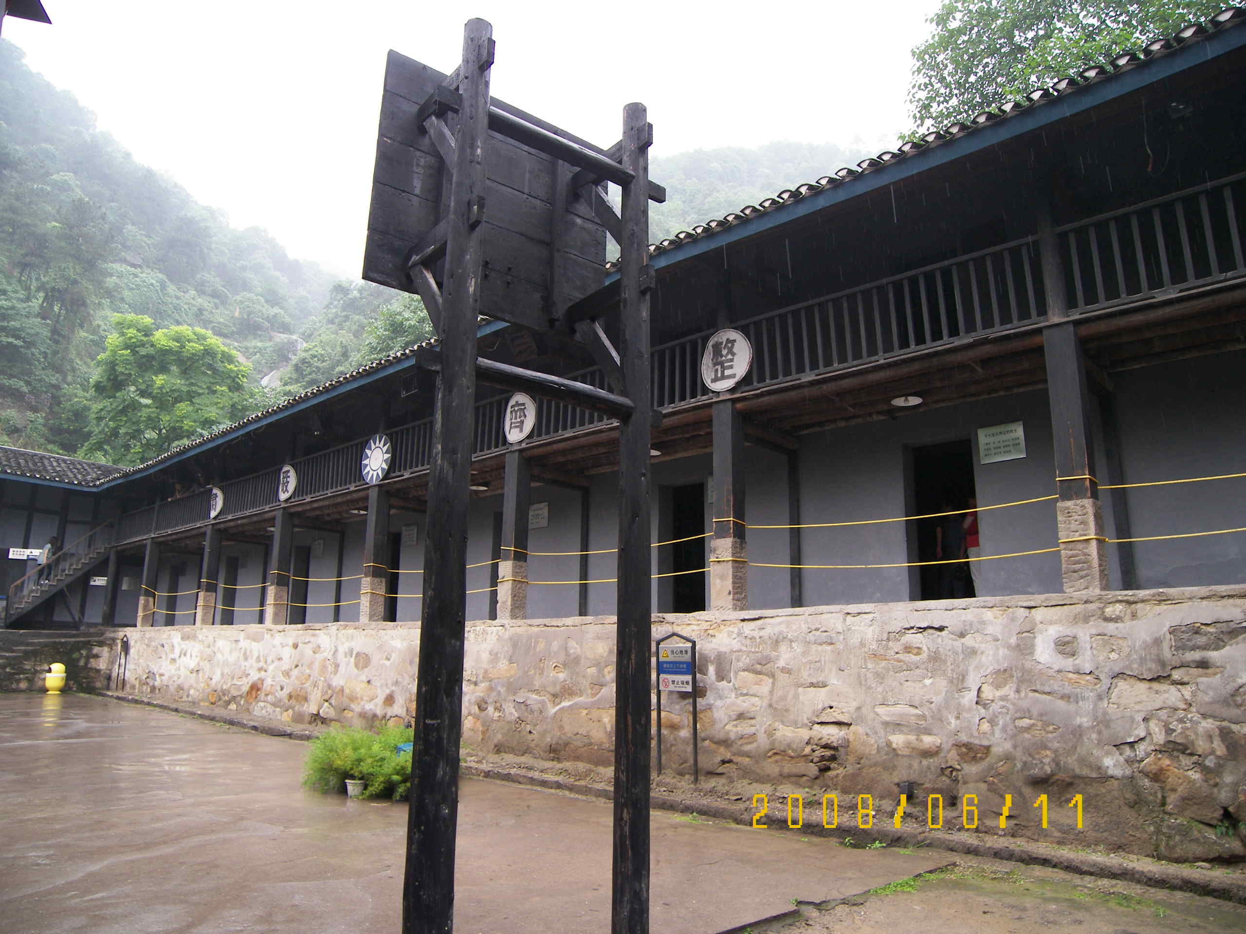 出來左轉沿公路去氣象臺,這里是二戰珍珠港事件爆發后,中美兩國為增進雙方軍事情報交流與合作,搜集中國沿海地區水文、氣象資料而建立的.感覺路標不大清晰,問了一下才找到.進去的時候工作人員都不在,一個人慢慢看,這里到后來成為了對付我黨的一個特務基地.出氣象臺去梅園的路上下起了大雨,幸虧早有準備,冒雨沖到了梅園,這里是戴笠為梅樂斯修的別墅,因梅樂斯喜歡梅花,1944年秋建成后四周編種梅花而得名,地方不是很大,內容也多是與中美合作所有關,也算是一個反共基地了,看完躲了一下雨.有些好奇地問工作人員,這么高的臺階,這些老爺天天自己爬的?答曰,山后有汽車道,或者乘滑竿上下,恍然.