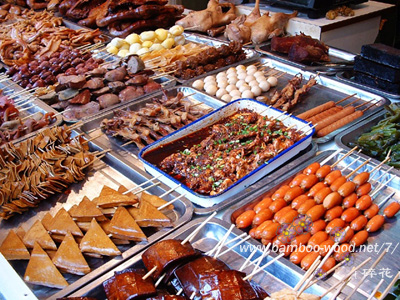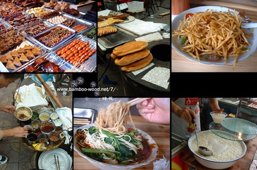 (攝影:碎花 上排從左至右:串串香、燒餅、油茶;)