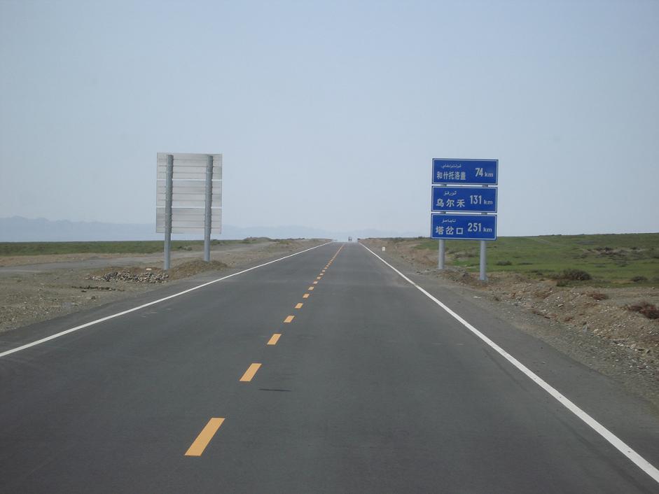 第二個(gè)是去奎屯的哈薩克夫婦,他們開一個(gè)普桑,車已經(jīng)很破了,他們?cè)诩佑驼拘ⅲ揖蜕先フ?qǐng)他們載我們一程,他們同意了。我們?cè)诤褪餐新迳w縣城吃午飯,我們請(qǐng)那大哥大姐吃抓飯。吃了午飯一耀發(fā)信息來說你們已經(jīng)到魔鬼城的門口了。我們?cè)?FONT face="Times New Roman">43的高溫中繼續(xù)前進(jìn),熱浪一陣一陣沖過來,走了一陣大哥打瞌睡,我找他說話,大家語言不通也蠻費(fèi)勁的!我有些擔(dān)心,好在大哥是走慣那路的人,他停歇下來,到路邊去拿礦泉水來淋著洗了把臉!