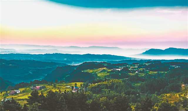 橫山之美,美在舌尖誘惑。首推自然是遠近聞名的橫山大米。清朝道光年間的《綦江縣志》就有記載:“橫山治東三十華里,山勢綿亙,基土多平田,甚產嘉谷。”曾經,橫山大米有著“貢米”之美譽,進獻清朝朝廷;而今,它又被評為“重慶市十大好吃大米”。鮮香軟糯的橫山大米,輔以當地的藍莓酒、農家豆花、土菜“八大碗”,讓人口舌生津、食欲大開。酒足飯飽之后,再飲一杯天臺山茶,那一片綠色的海在口齒之間纏繞,淡泊以明志、寧靜而致遠不正是這種感覺嗎?