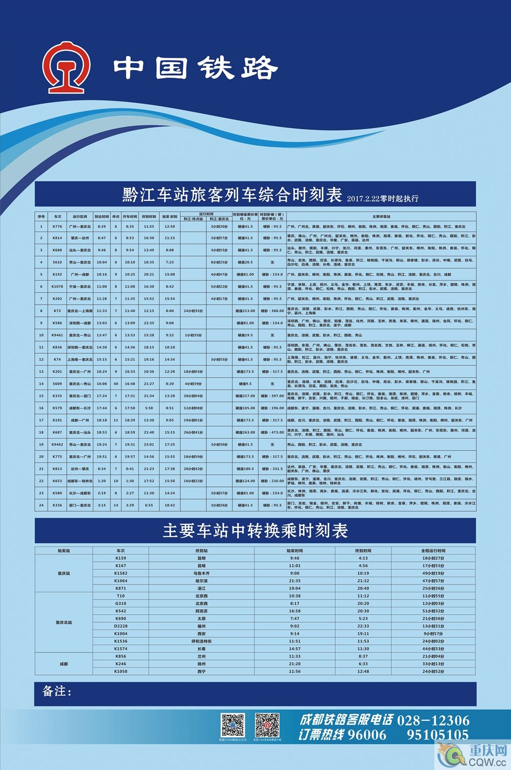 黔江車站旅客列車綜合時刻表