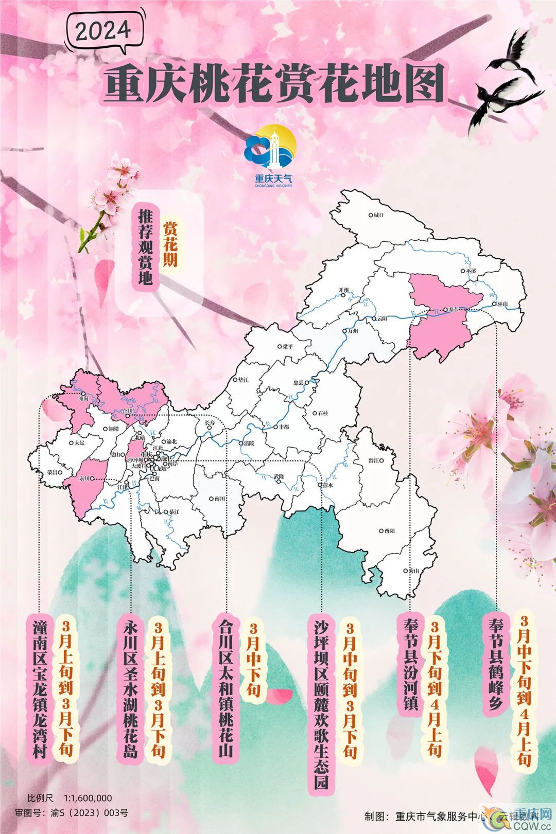“桃花春色暖先開,明媚誰人不看來”。每年3月是踏青賞花的好時節(jié)。眼下,重慶多地桃花已經(jīng)開始吐露芬芳,一幅幅春日美景圖正在陸續(xù)上線。在此,重慶天氣特別制作《重慶2024年桃花賞花地圖》,邀你一起打卡春日美景,盡享唯美風(fēng)光